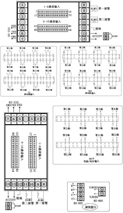 注2:統(tǒng)一控制/報(bào)警輸出:即儀表所有通道共用一個(或兩個)報(bào)警輸出繼電器,或所有通道共用一組變送控制輸出。統(tǒng)