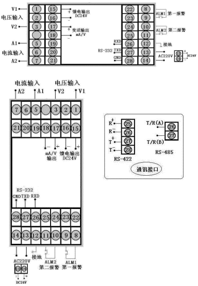 交流電壓表,輸入類型為0~5A,繼電器控制輸出,帶RS-485通訊,帶上限繼電器報(bào)警輸出,帶DC24V饋電輸出。