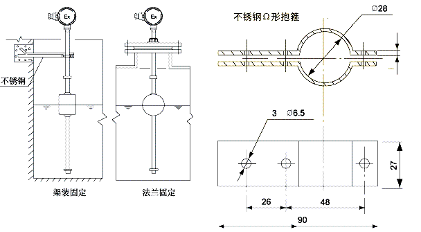 2、如量程超過(guò)3米,變送器的管底要定位避免主導(dǎo)管晃動(dòng)。