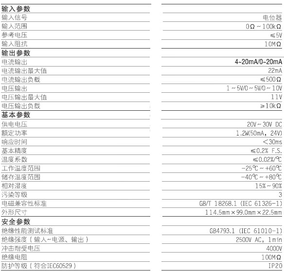 產(chǎn)品名稱 | 型號 | 輸入信號 | 輸出信號 | 供電方式 |