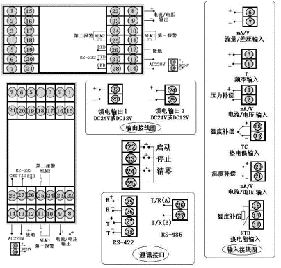補(bǔ)償輸入5位流量積算控制儀,流量輸入類型為4~20mA,壓力補(bǔ)償輸入類型為4~20mA,溫度補(bǔ)償輸入類型為4~20mA,4~20mA變送輸出,無報(bào)警輸出。