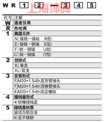 WZ系列可卸式隔爆熱電阻型號(hào)表示