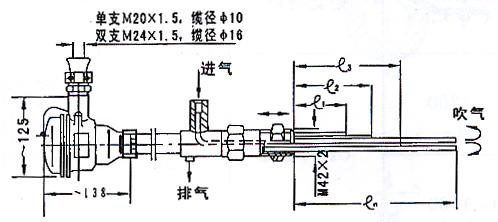 單點(diǎn)多支熱電偶 兩根鎧絲:T1=3920mm