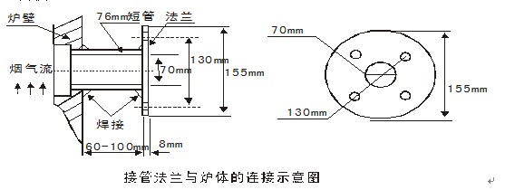 預(yù)先加工好帶法蘭的設(shè)備短接管,孔徑為Φ76,長度約為400mm。按要求選好取樣位置(爐壁或管道),開一個(gè)Φ76 的孔,將短接水平焊接到爐壁上,焊接時(shí)要保證焊接處不漏氣。把檢測器插入短接管中,接管法蘭與檢測器法蘭之間墊上2—4mm 厚的石棉墊,旋緊4 個(gè)螺栓,使其不漏氣即可。