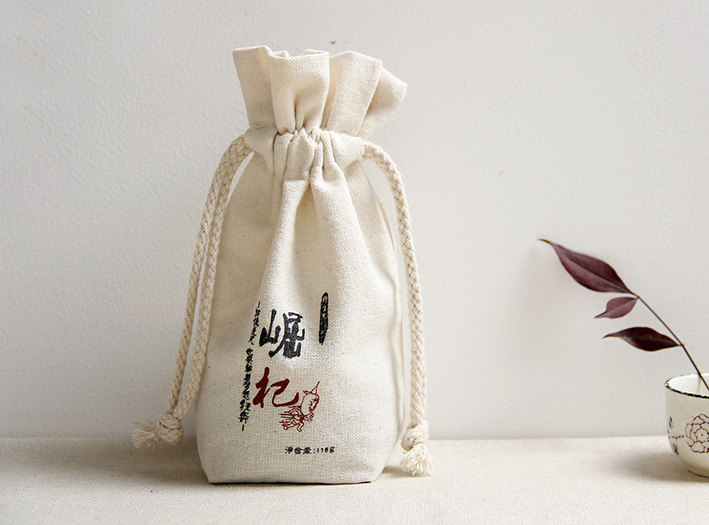 此款束口袋采用的是帆布制作而成的一種圓底束口袋,并且采用的是絲網印單色手工印刷而成的一種宣傳禮品束口袋