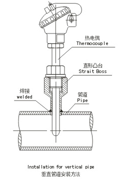 凸臺(tái)安裝示意圖(適用于熱電偶、熱電阻和雙金屬溫度計(jì))