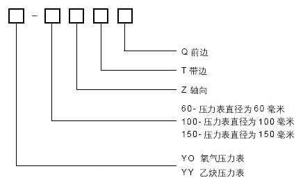 例:YO-100 0-1MPa直徑為本100毫米測(cè)壓范圍0-1MPa的氧氣壓力表