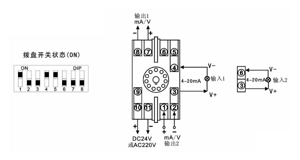 SWP-M30系列模塊可帶雙通道,并且可組成不同系列模塊的組合。熱電阻/熱電偶溫度變送模塊。電壓/電力/頻率轉(zhuǎn)換模塊。配電模塊--它給二線制變送器提供電壓的同時(shí),接收來自變送器的與差壓、壓力、液面等成比例的4--20MA DC輸出信號。數(shù)學(xué)運(yùn)算模塊--它將輸入信號進(jìn)行數(shù)學(xué)運(yùn)算(開方、加減、乘除、比值等)后,轉(zhuǎn)換為隔離的1--5V或4--20MA信號輸出。